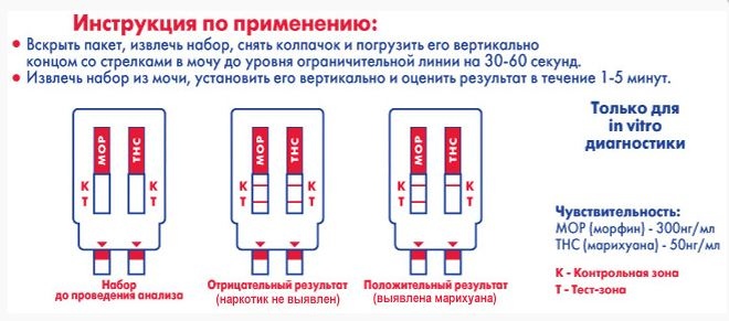 МОР –Морфин/героин – 300нг/мл; ТНС -Марихуана - 50 нг/мл.